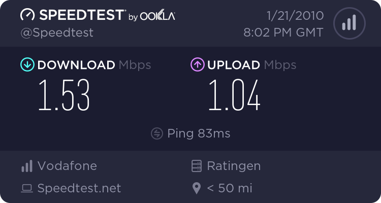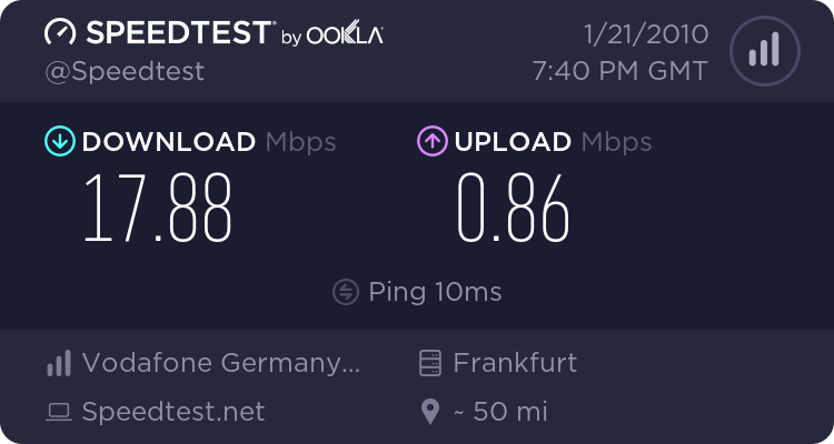 Im Gegensatz zu Gestern geht der Speed bei mir heute Abend auch in den Keller und das nach 23.00 Uhr :wand: