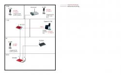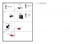 Ich habe mal eine Skizze angefertigt, wie die derzeitige Netzwerk und Telefon Konfiguration bei uns aussieht. Ich hoffe, man kann alles erkennen.