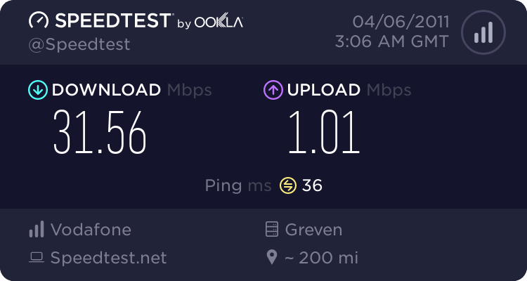 den ganzen abend schon zeigt die nadel bei speedtest.net nach kurzem, schnellen start exakt bei 20 mbit stehen, konstant bis zum ende der messung.