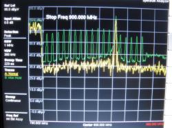 Dann habe ich aber auch noch einen Träger bei 823 MHz gefunden, mit dem selben Pegel wie die normalen Kanäle. Diese reichen bis ca. 720 MHz.