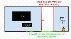 Aufbau: Wand mit TV und Interrouter / Tür / Anschlussdose
