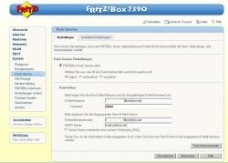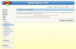 Habe mir die Fritzbox 7390 zugelegt. Die Konfiguration, bzw. Einstellung ist kein Problem, das lief analog der vorhergehenden Fritzbox 7170. Bis dato habe ich immer den Push Service genutzt, um mir das Ereignisprotokoll des Sytems zu schicken.