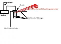 Das Eingangskabel geht in den Verstärker und von dort auf einen 5-Fach Verteiler an dem in einer Baumstruktur je die Wohnung hängen. An einem Ausgang hängt das Kabel was bei mir in die Wohnung geht und dann weiter in andere Wohnungen. Müsste an den 4 anderen Abgängen des Verteilers zu weiteren Wohnungen nicht Rückkanalfilter gesetzt werden um Störungen zu vermeiden? Es gibt nämlich seitdem sporadisch Störungen im Digitalem TV und deswegen schon zwei Technikerbesuche hinter mir. Denn soweit ich weiss hat kein anderer im Haus Internet über Kabel.