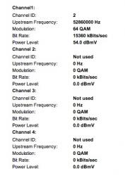 Der Empfangspegel ist auch gestiegen von 1 bis 2 dbmv auf 3 bis 4 dbmv. SNR unverändert bei 39 - 40 dB. Komisch ist das er nur noch einen Upload Kanal nutzt. Vorher immer 4. Auch wenn der Wert unter 50 geht nutzt er nur noch einen.
