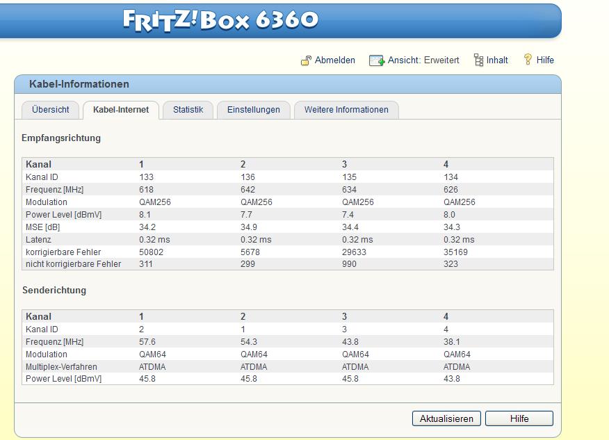 Unitymedia Frage zu Fritzbox 6360 und Kabelinfo zu korrigierbare Fehler