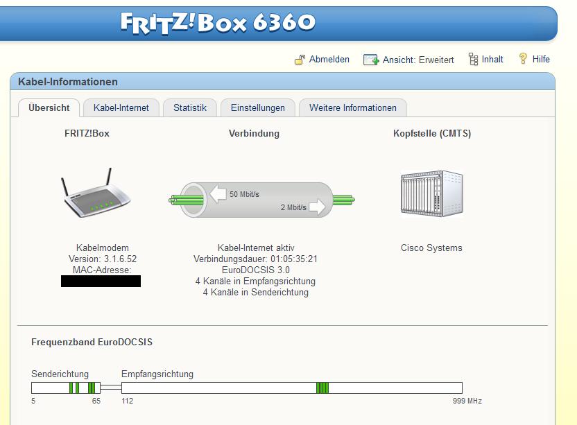 Unitymedia Frage zu Fritzbox 6360 und Kabelinfo zu korrigierbare Fehler