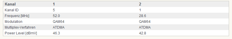 Sowohl bei mir als auch bei den anderen rutscht der Upstream stellenweise bei niedrigen Frequenzen auf bis zu 36.5 dB. Die Folgen sind eingeschränktes Telefonieren und Neusyncronisierungen des Modems. Dieses "Abrutschen" tritt aber immer nur auf einem Kanal auf und nur bei niedrigen Frequenzen. Auch ist es so, das Frequenzen bis zu 35 MHz augenscheinlich mehr gedämpft werden also die über 35 MHz. Dies tritt aber auch nur auf diesem Kanal auf.