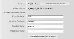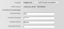 Bei deinem Telefon wählst du als Anbieter Fritzboxfon aus, trägst deinen Benutzernamen (wird in der Fritzbox angezeigt etwa 620) und dein Kennwort ein.<br/>