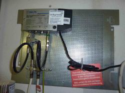 Das rechte obere Koax-Kabel geht vom Verteiler zu unserer Antennendose im Wohnzimmer. Hier hängt der Unitymedia-Receiver dran.