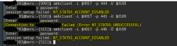 Nun erreiche ich mit dem heise Portscanner die Ports 444 und 446, Port 445 ist aber "gefiltert". Entsprechend kann ich mit einem Linux-Samba-Client auf Ports 444 und 446 verbinden, nicht aber auf Port 445: