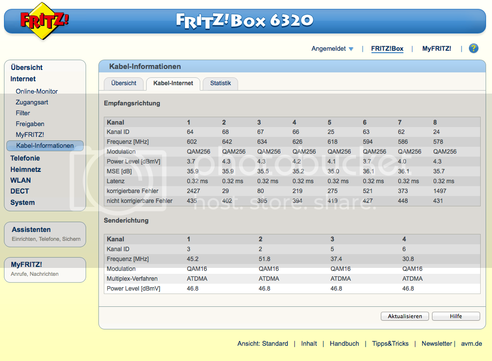 Hallo an allen!Bin neuer UM Nutzer in einer Erstbezugneubauwohnung. Habe das Fritzbox 6320 Modem. In der Fritzbox Seite wird folgendes gezeigt:
