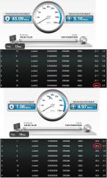 (anklicken zum vergrößern)Auf obigem Bild sieht man die Geschwindigkeitsmessungen in Relation zu SNR und Power.