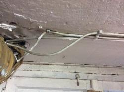Denke ich auch sind drei Kabel. Zwei sind gleich dick (denke Telefon) und 1 ist dicker und könnte Kabel sein?
