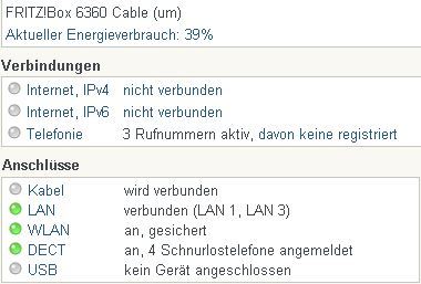 Fakt ist, dass morgen früh zwischen 10 und 14Uhr ein Mitarbeiter von Mediacom bei mir aufschlagen wird mit dem Auftrag meine seit 1,5 Jahren ohne Probleme laufende Fritzbox mit einer neuen auszutauschen und vor Ort provisionieren zu lassen, da meine aktuelle Fritzbox angeblich nicht zu erreichen sei (laut Mediacom). Die Unitymedia Mitarbeiterin meinte zuvor zu mir, dass meine Fritzbox doch die aktuelle Konfigurationsdatei hätte ?! (KONFUS!)