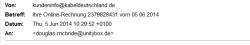 Diskutiere Vorsicht Falsche Emails unterwegs im Allgemein Forum im Bereich Rund um Internet; Hallo Zusammen, heute habe ich 2 Emails von Kabeldeutschland erhalten obwohl ich in NRW Wohne und habe Unitymedia.