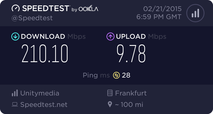 Zumindest bei den ookla Lügen Speedtests komme ich in der regel auf die 200mbit