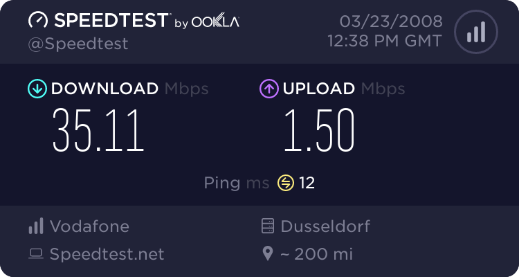 Zumindest im Upload. Der Downspeed pendelt sich tagsüber auch schonmal zwischen 25 und 28 MB ein-was ich allerdings nicht wirklich schlimm finde :super: