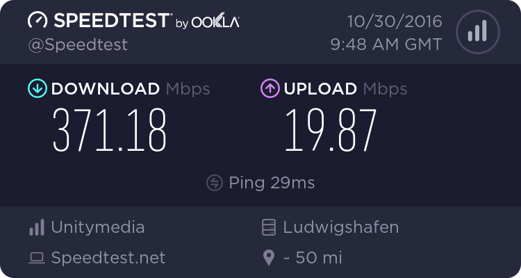 Ich werde nun auch mal ein Langzeit Speedtest mit einem kleinen PC machen. Da ja oft gesagt wird das die 400 Mbit/s nicht konstant ankommen.