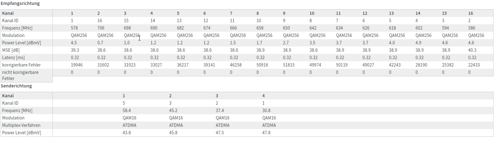 Kabelinformation - Kanäle: