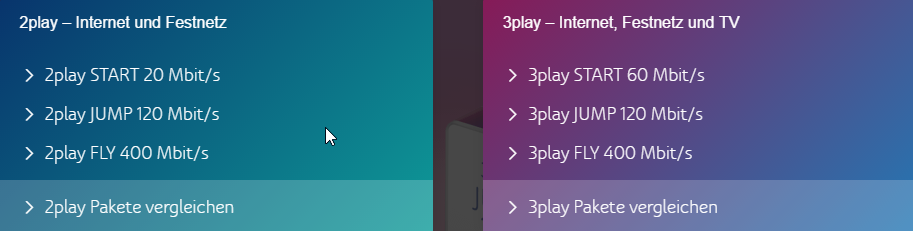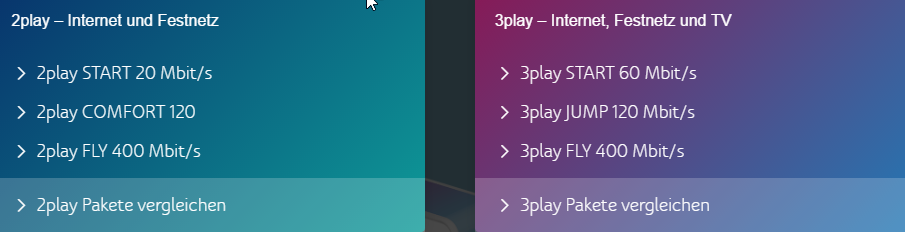 Heute fällt mir auf dass das Paket 2play JUMP seit heute oder gestern wieder 2play COMFORT heisst, so wie es vorher schon mal hiess. Ausserdem scheint die Preiserhöhung vom Februar wieder zurückgenommen worden zu sein, es kostet jetzt wieder 24,99 EUR statt 29,99 EUR.