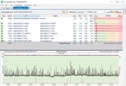 Another issue with those plots is that the MAX time value isn't available in the upper data area. Pingplotter averages the plot data. In a 60 second, and maybe 5 minute plot, with a reasonable ping rate, the data that is plotted will be close to or at the real maximum response times. As you go up in timeframes, 10 min, 60 min 24 hours, etc, etc, you are attempting to cram more data into the same horizontal plot area. Essentially more data points per horizontal pixel. Pingplotter deals with this by averaging the data points in some specific horizontal pixel range instead of showing the max and min values. The end result, as you go up in timeframes, the plot looks better and better as any high time responses are buried in the averaged data and the plot line flattens out. You have to drop back down to a 60 second time frame to actually see the real values, and, when you drop the ping intervals, somewhere down below 0.5 seconds, you eventually get to a point where the data is averaged and you can't do anything about it. In this regard, pingplotter is not a good test tool. They are aware of this as its been brought up to them on more than one occasion. So, for the time being try displaying that plot with a 60 second and 5 min timeframe.