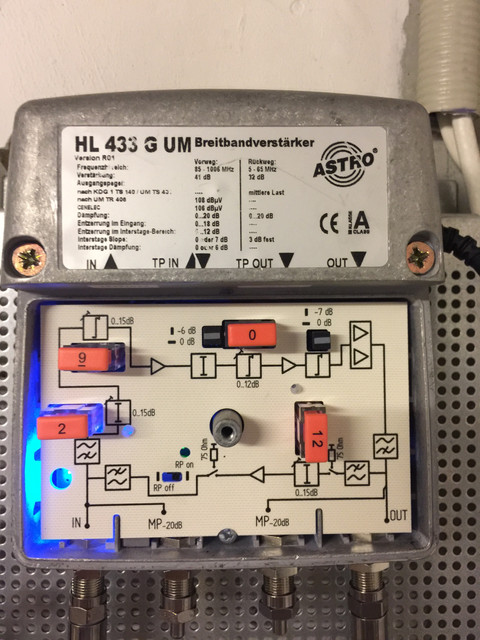 Angenommen, man hat 3 Endgeräte, das Endgerät, das am nächsten am Verstärker hängt wird auf 48dbMv eingepegelt, das Gerät im Mittelfeld auf 45dbMV und das am weitesten entferntesten auf 43dbMV?