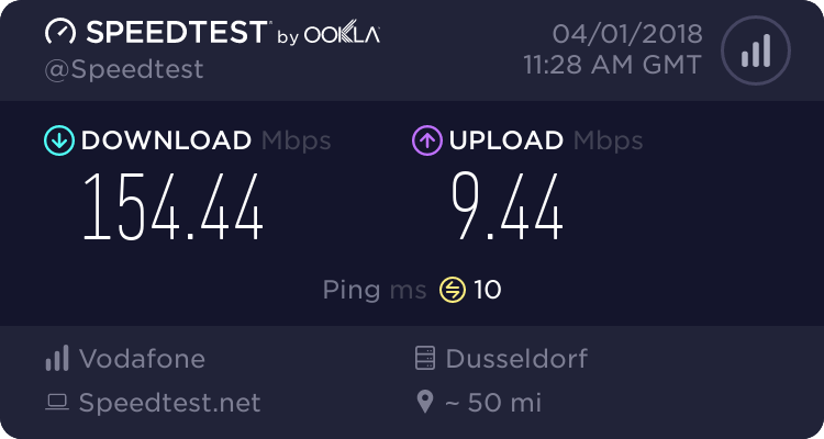 Ich erreiche die 10 Mbit (bis zu....) aber nicht, komme so auf 9,2 - 9,4..