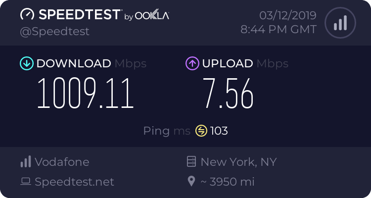 Aber es gibt ja auch bessere Netzknoten bei VFKD, z.B. in Berlin. Da ist zur Stoßzeit das Gigabit auch noch aus New York zu haben: