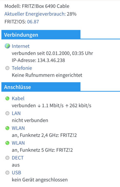 Im Gegensatz zu @Menano Fritzbox zeigt sie statt 1,1MBits/262KBits leicht andere Werte an. (1MBits/256KBits). In der Supportdatei ist als Docsis Verbindungsgeschwindigkeit 1024000000/256000 vermerkt. Kann also sein, dass die alte Firmware in der GUI anders umrechnet als die Neue.