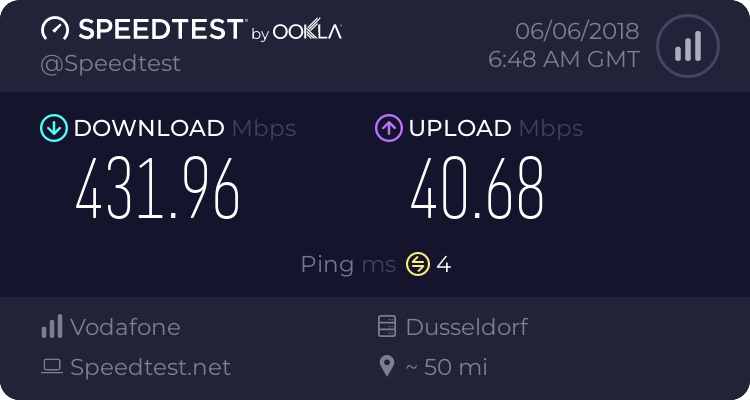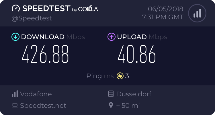 Hängst Du direkt an ner Glasfaser :kratz:Zur Primetime weiterhin rasant unterwegs.