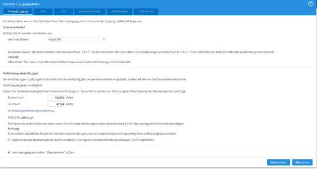 OK, dann probiere ich das ganze mal genau so (nur mit Unitymedia). Ich hab im Moment leider nicht die Möglichkeit (oder die Geduld) noch länger auszuprobieren und hier ohne Internet rumzuhängen.