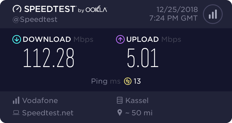 Getestet habe ich das bereits mit einer Direktverbindung zum Modem und mit zwei unterschiedlichen Geräten (inkl. Win und Linux). Auch andere Speedtests führen zum gleichen Ergebnis.