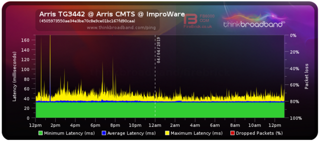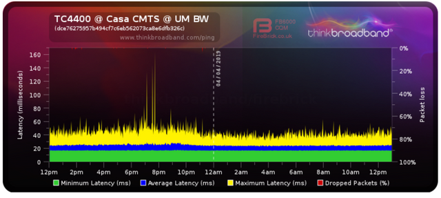 Wobei in meinem Segment, das ja seit Juni 2018 nicht mehr funktioniert, der Grund vermutlich im Rückbau der lokal installierten (Primacom-)Technik zu suchen ist. Den Latenzen nach zu urteilen gibt es nun wohl RFoF ans Ende der Welt, wo dann ein CMTS steht. Und schon funktioniert die Zuteilung der Zeitschlitze im Rückkanal nicht mehr richtig und T3-Timeouts mit Packet Loss sind die Folge.noe, von HFC-spezifischen Stoerungen wie geschrotteter Rueckkanal et al. ganz zu schweigen... :smile: