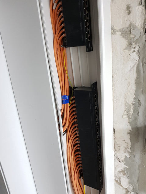 Wenn halbwegs professionell gearbeitet wurde, enden die LAN-Kabel in einem sogenannten Patchfeld/Patchpanel.