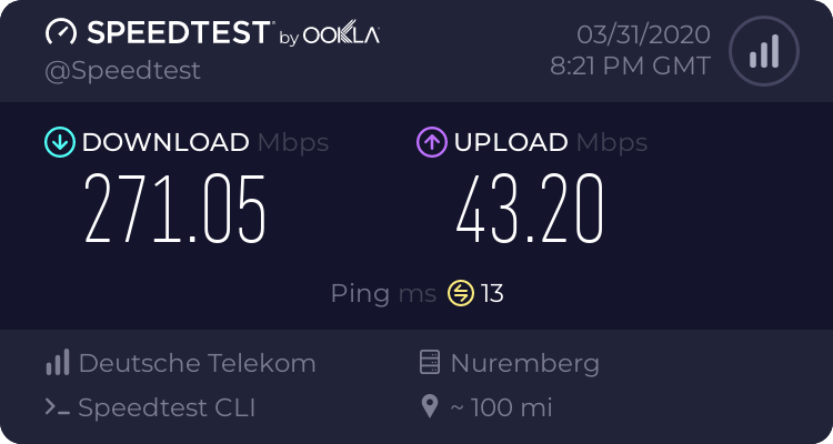 (Download ist - zumindest anhand der Speedtests - zufriedenstellend und Schwankungen liegen im erwarteten Rahmen möglicher höherer Auslastung.)