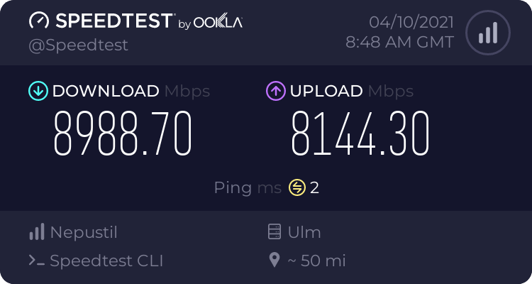 Also wenn von meiner 10G Leitung satte 1G im Down und 2G im Up fehlen, würd ich mich aber aufregen.