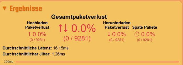 https://de.packetlosstest.com/ Ich habe mit den geänderten Einstellungen * Citrix ICA * Messdauer 119 Sekunden Messdauer, Server aus Deutschland folgende Werte gemessen: