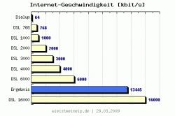 an unserer Leitung wurde übrigens nichts mehr gemacht, da man eine so hohe Bandbreite in unserem Ort nicht gewährleisten kann. Sie ist, wie man im Nachhinein festgestellt hat gar nicht möglich. ('??? wir hatten wie gesagt anfangs eine konstante Leitung.)