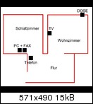 Buchse ist im Wohnzimmer, PC steht im Schlafzimmer. Telefon steht im Flur, Fax im Schlafzimmer.